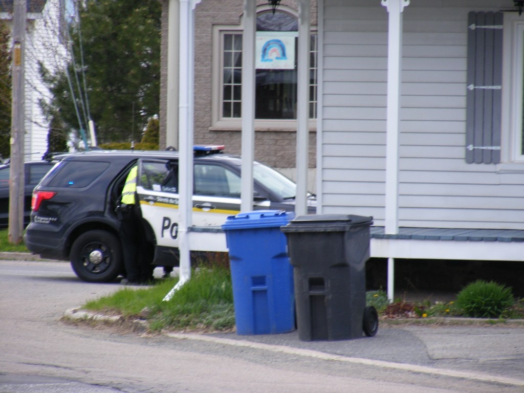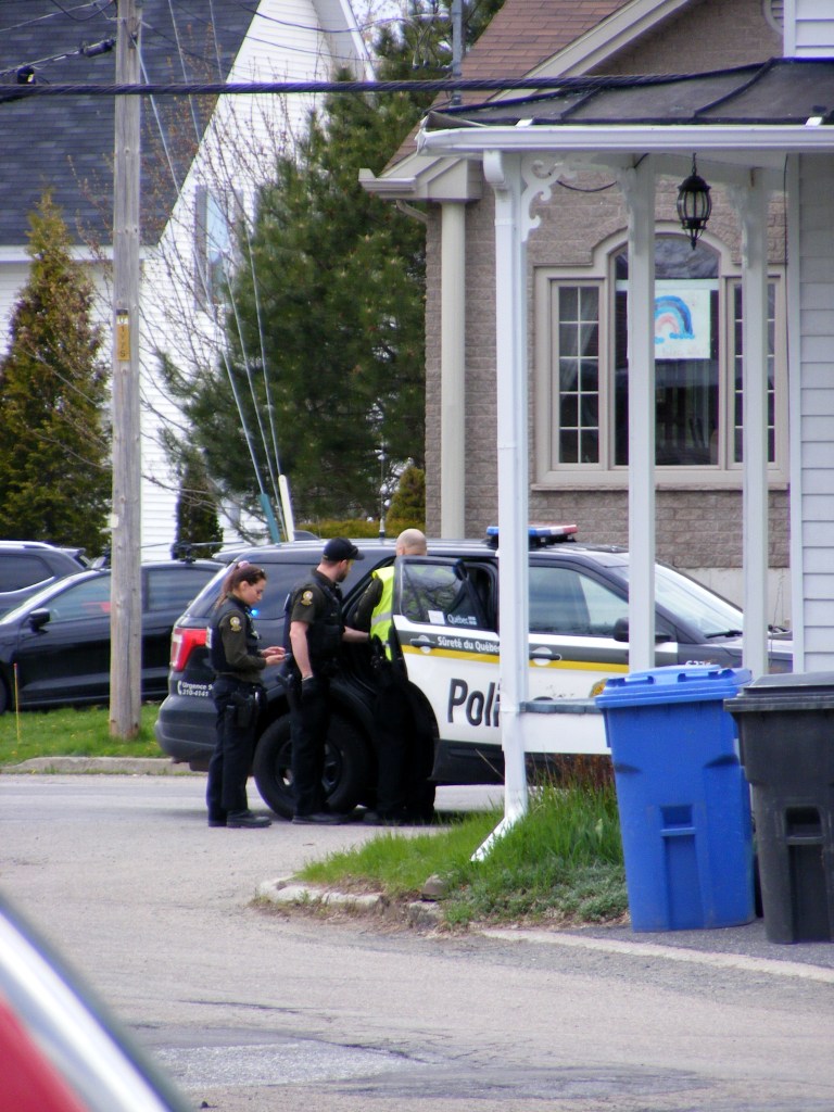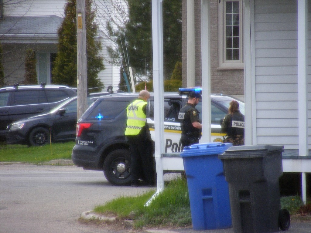 Arrestation à Sainte-Monique à la mi-mai, trois véhicules auto-patrouille et une voiture remorquée. Aucune idée de la cause de l’arrestation.