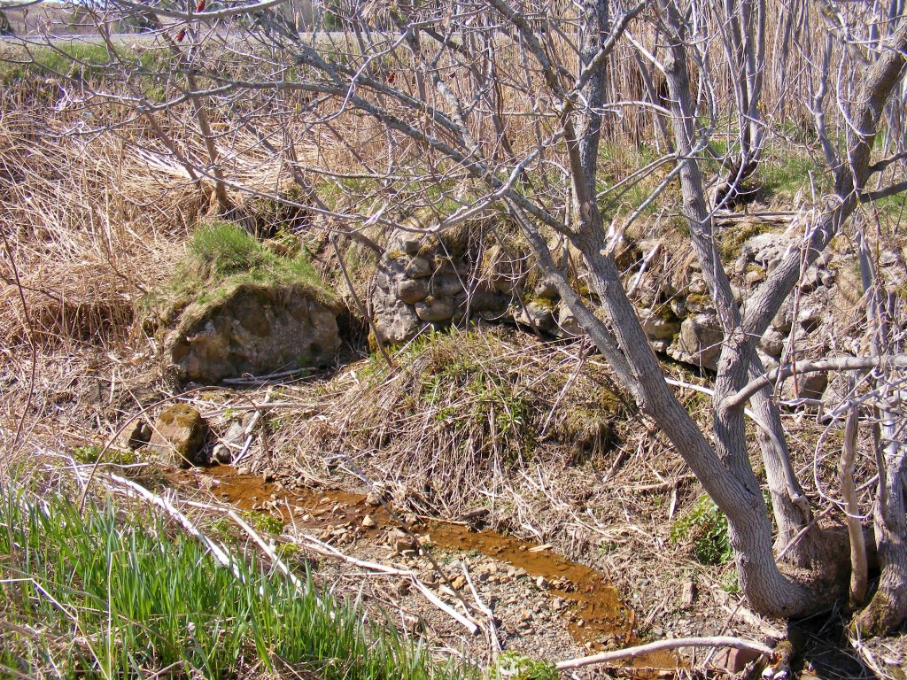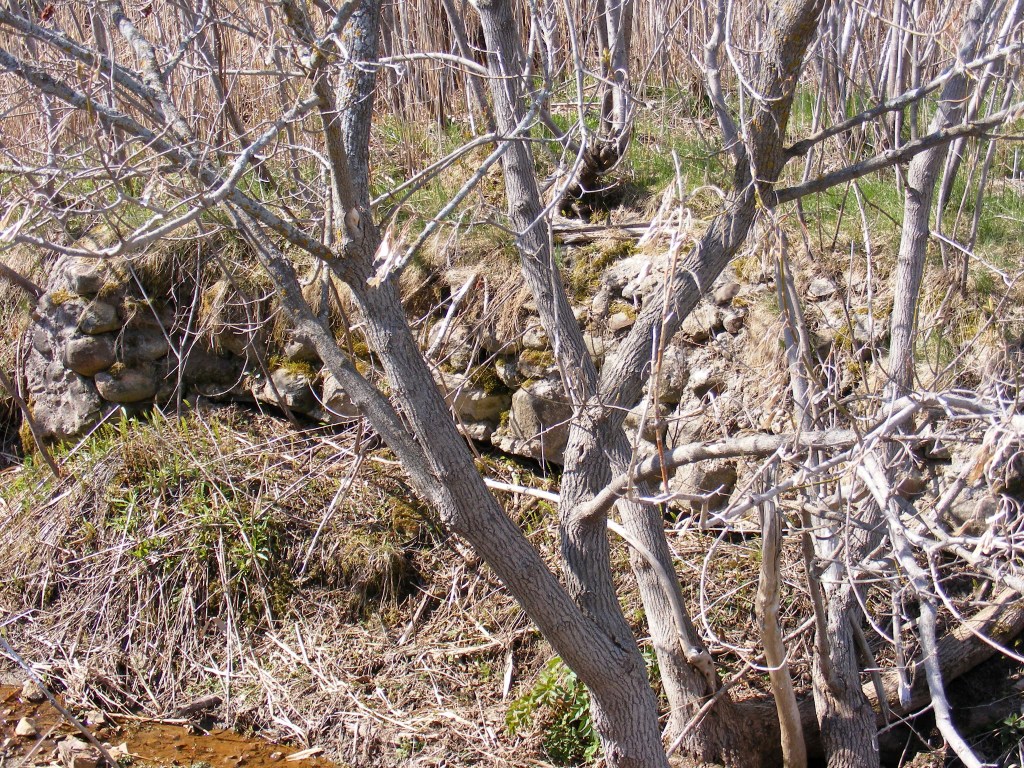 Muret de roches situé entre la 226 et la rivière, printemps 2020