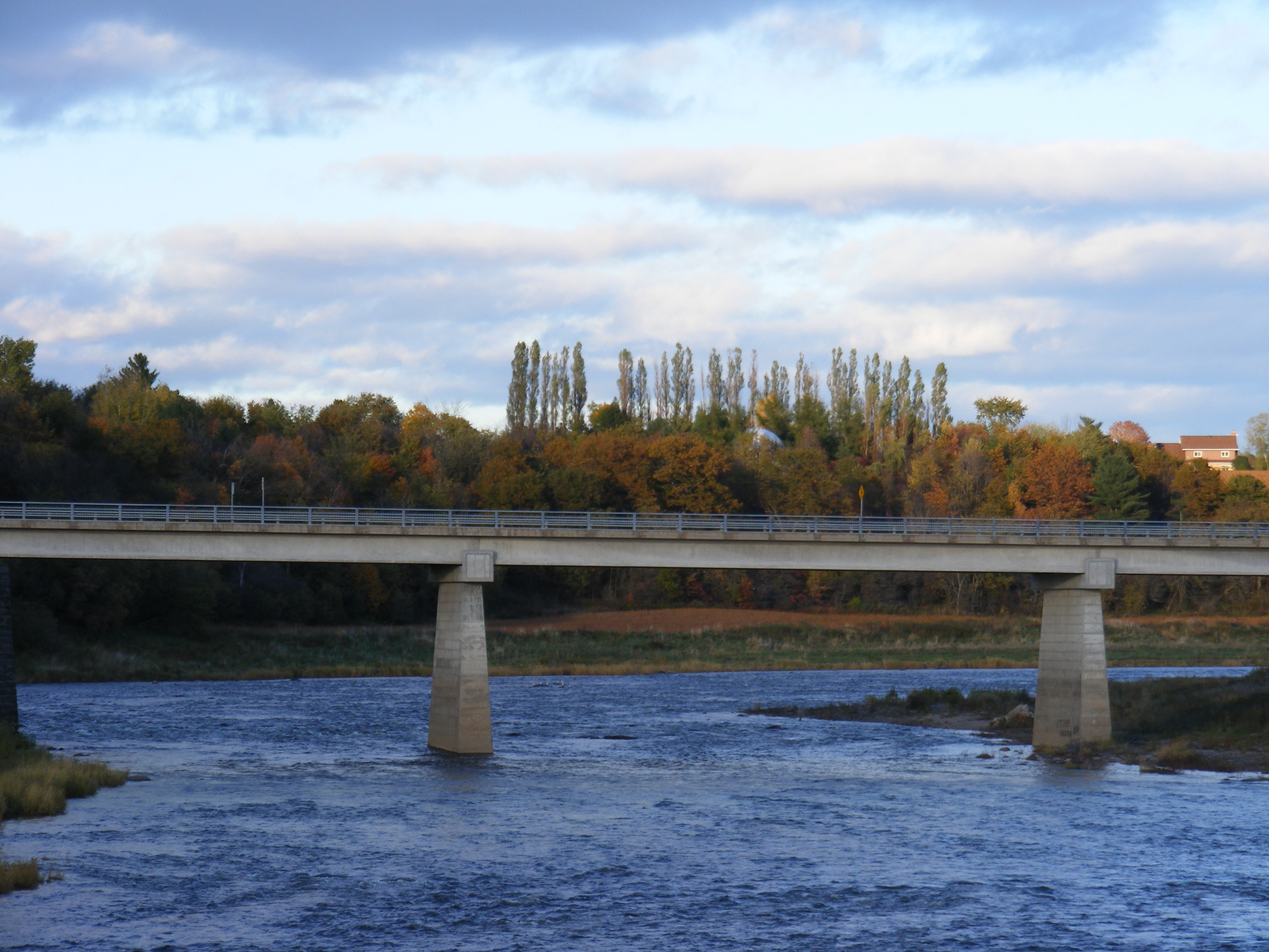 Vue sur la rivière , la 226 et la côte du haut de l’île, photo prise du en haut de la côte du bas de l’île, octobre 2010