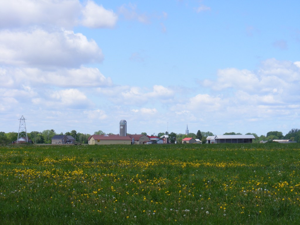 Vu sur le Rang du Nord-Est-de-la-Rivière et sur le clocher de l’église, juin 2020.