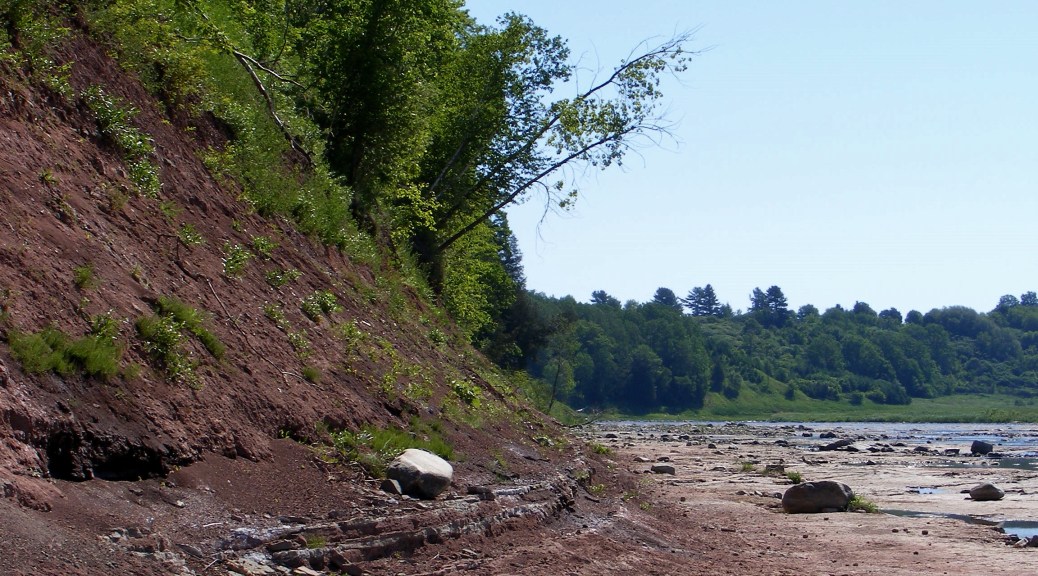Photos rivière Nicolet, où l’on voit les couches sédimentaires, Ste-Monique, juin 2020