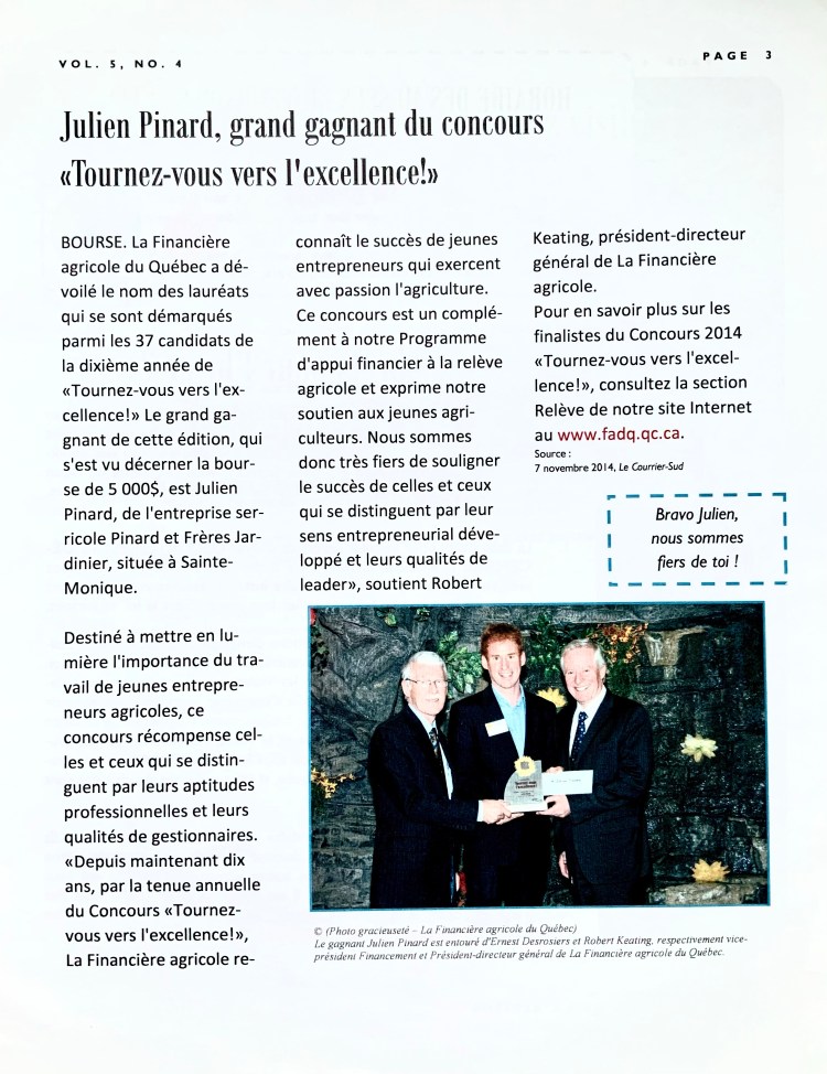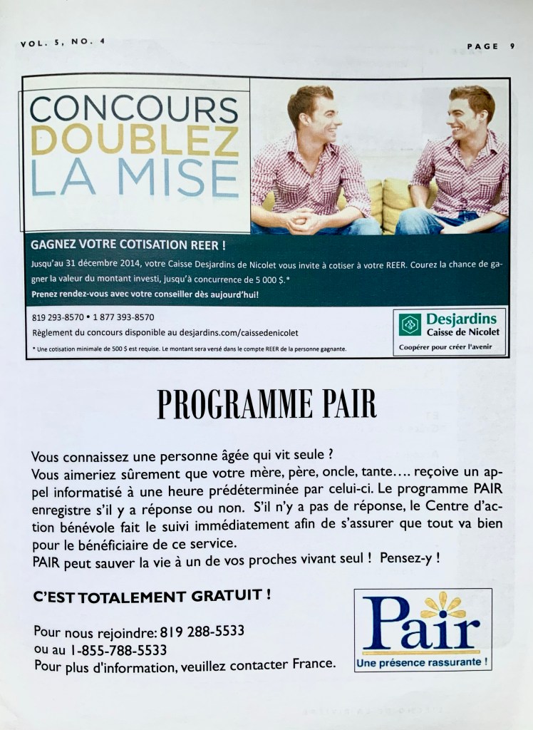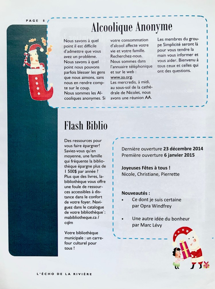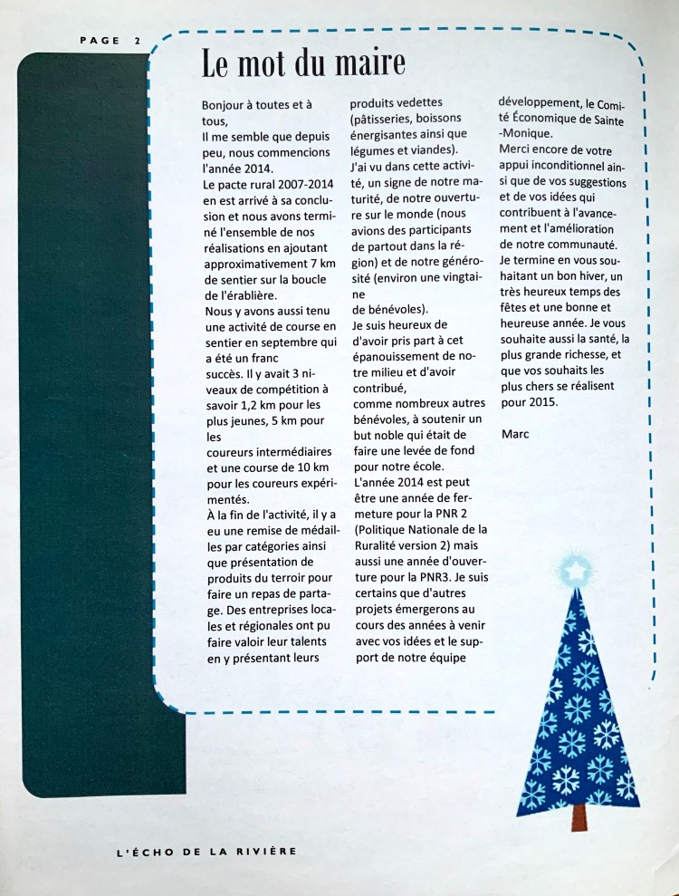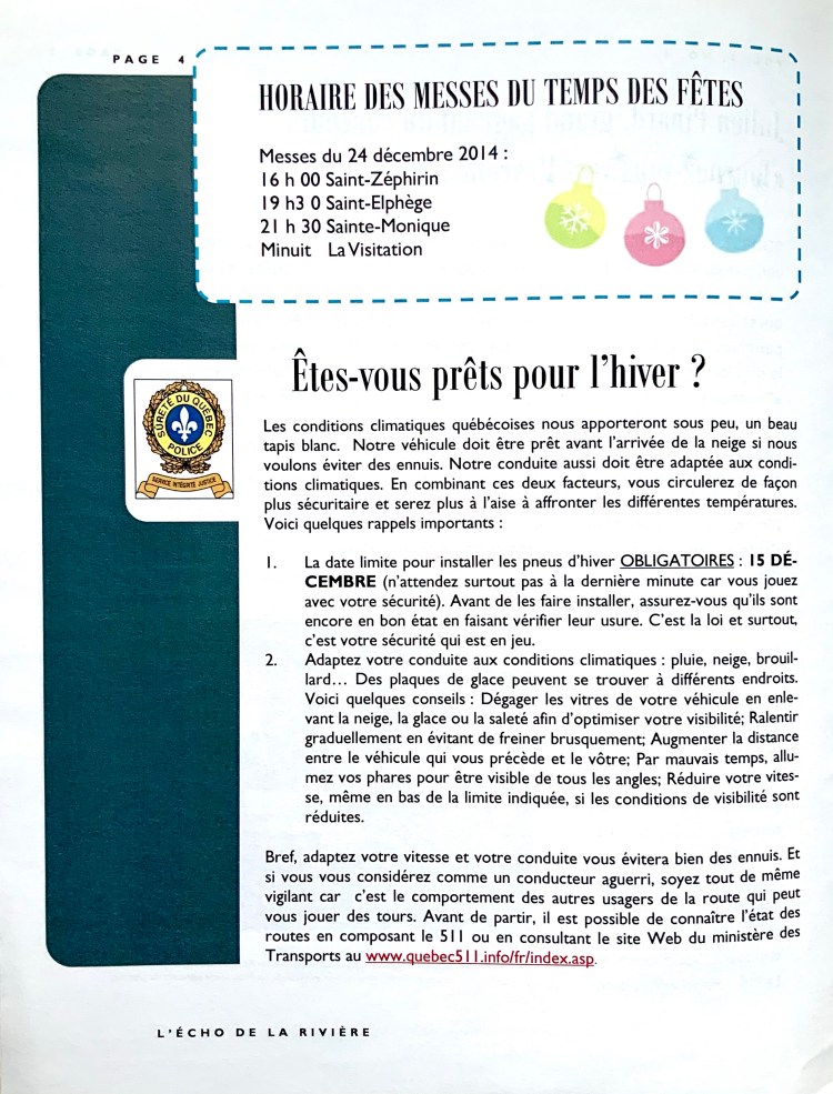 L’Écho de la Rivière, vol.5, no.4, hiver 2014. Sainte-Monique de Nicolet.