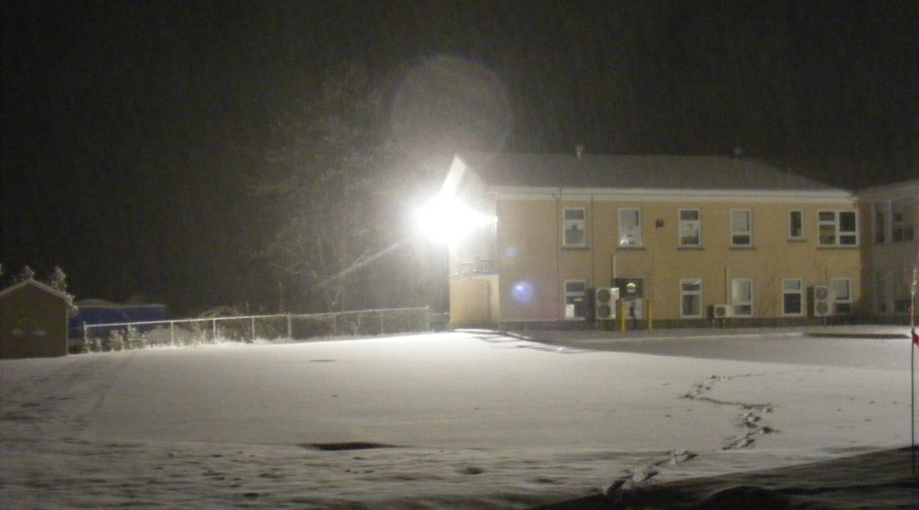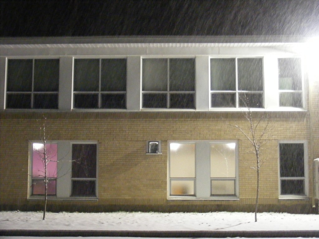 Photos de l’école Arc-en-ciel sous la neige, Sainte-Monique, Novembre 2020.