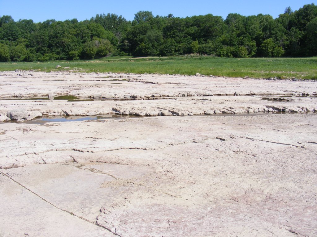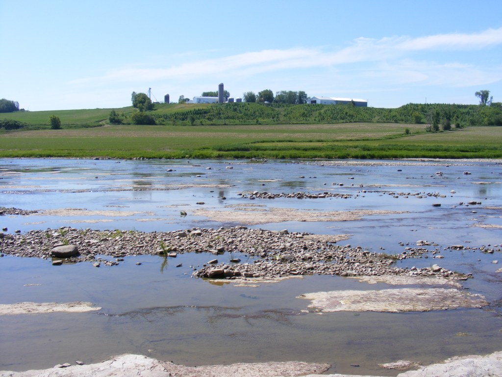 Moitié de la rivière asséchée et ferme haut de l’île, juin 2020