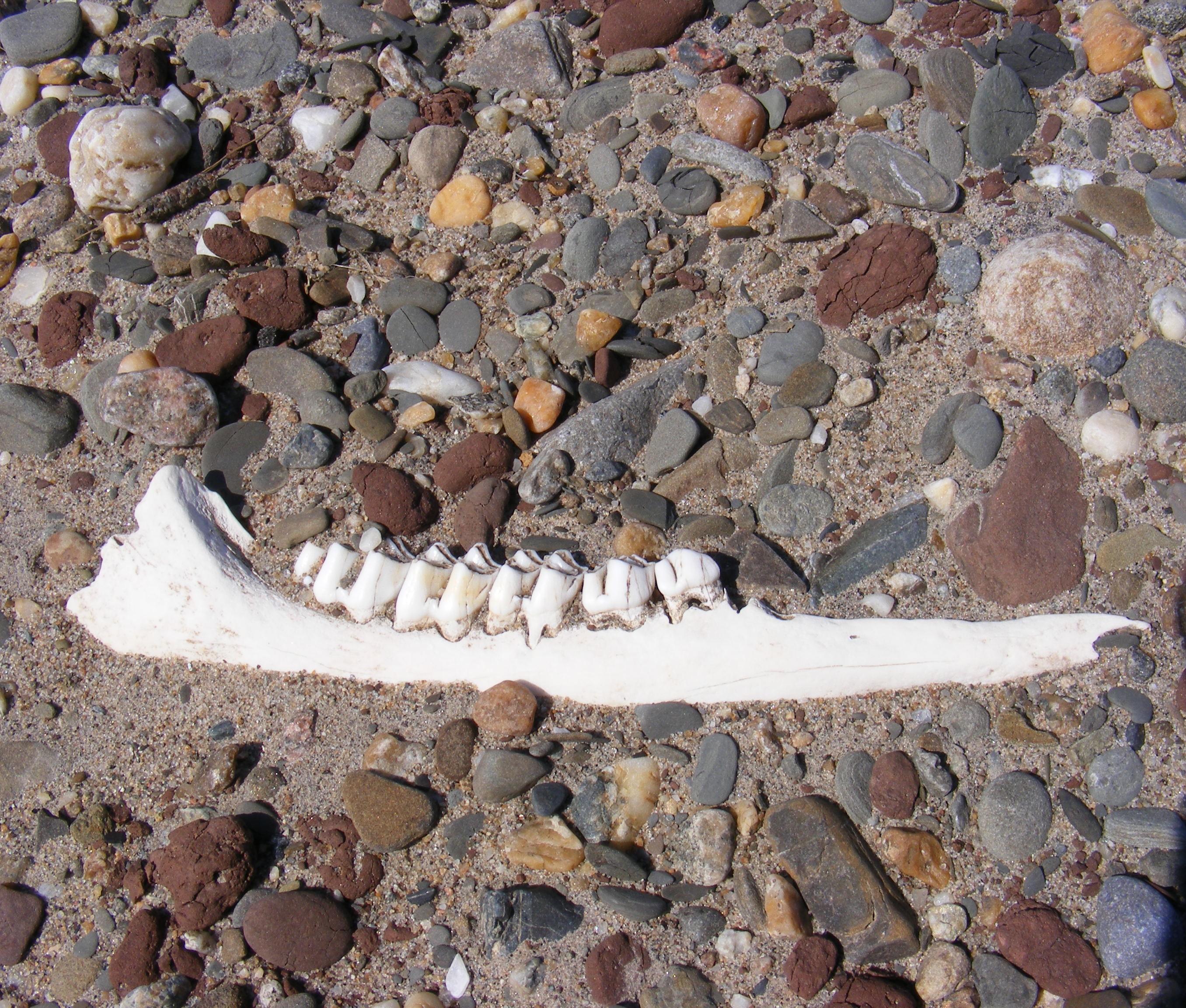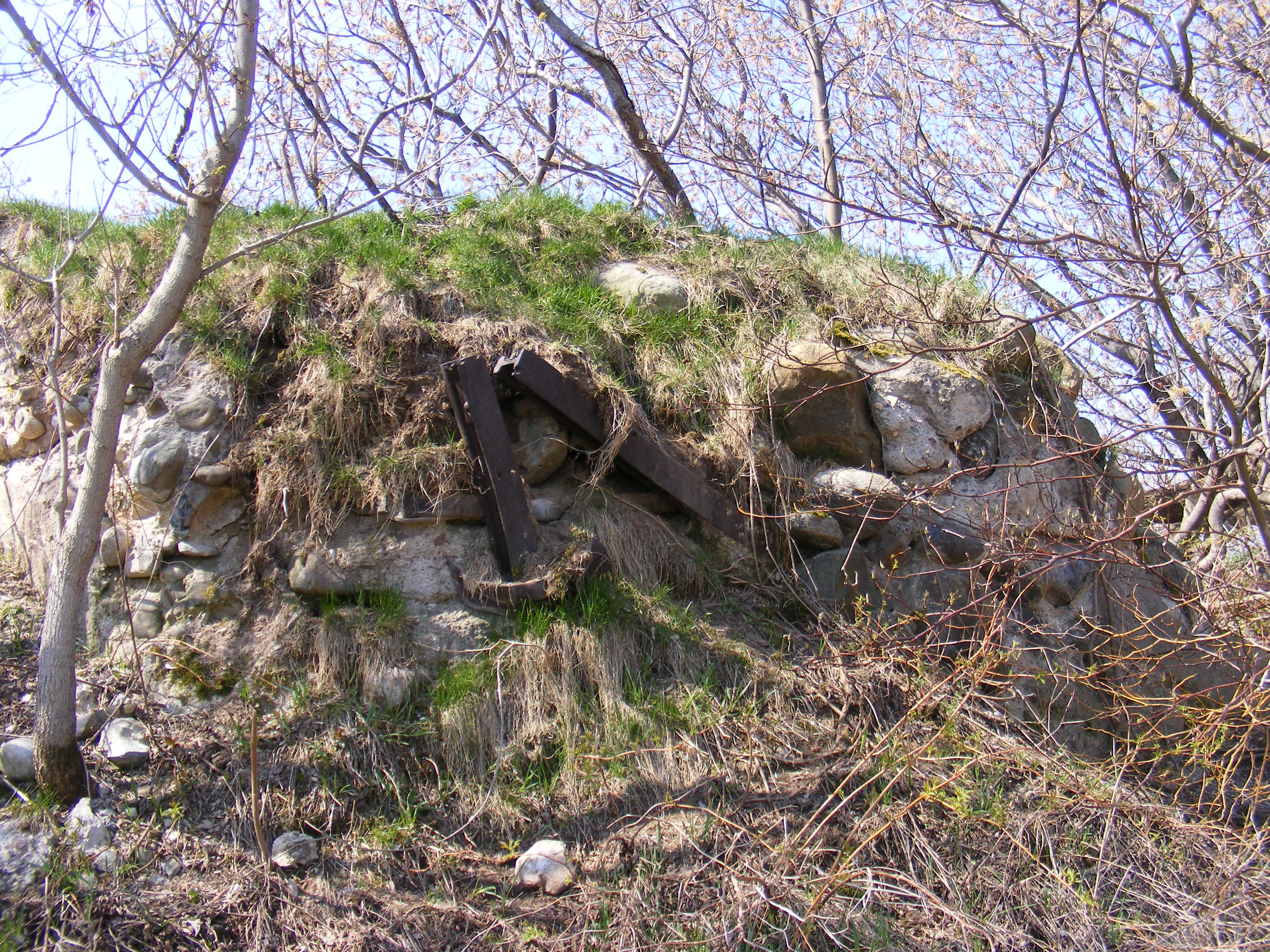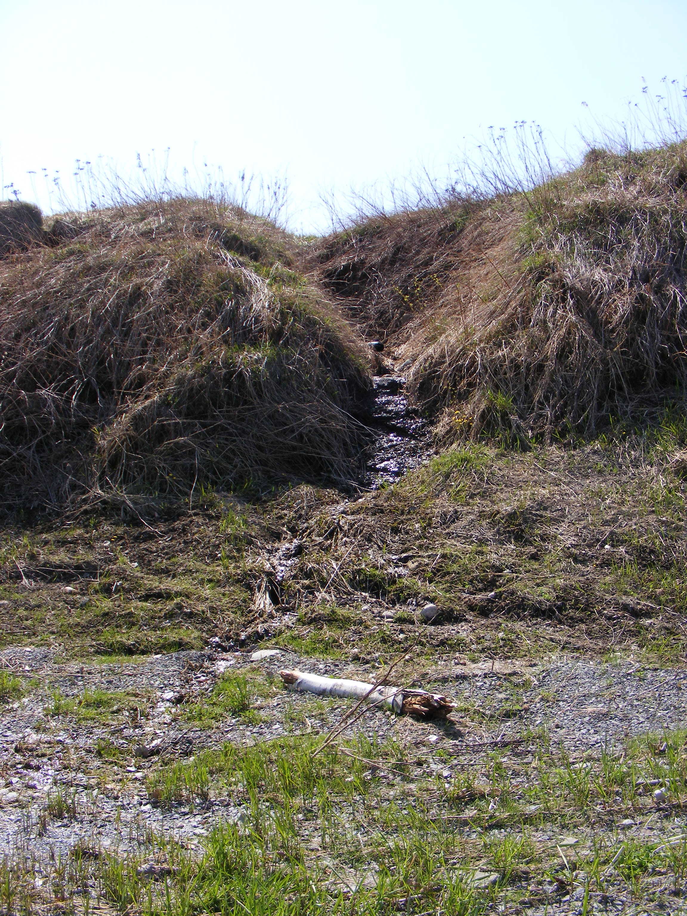 Trou dans une roche (plusieurs roches possèdent des trous similaires à cet endroit) et derrière : câble