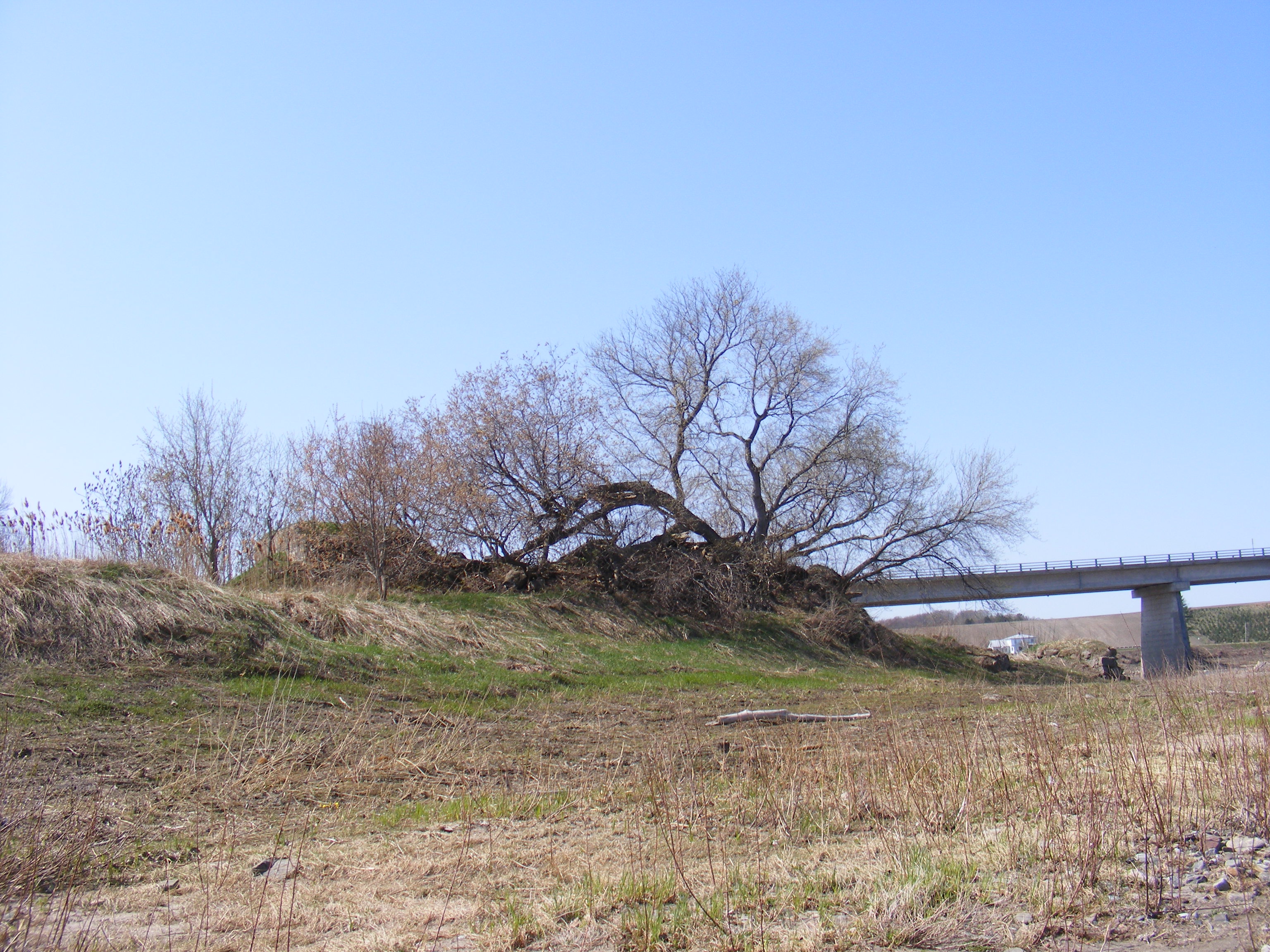 Emplacement d’un ancien pilier de pont ainsi que le pont actuel