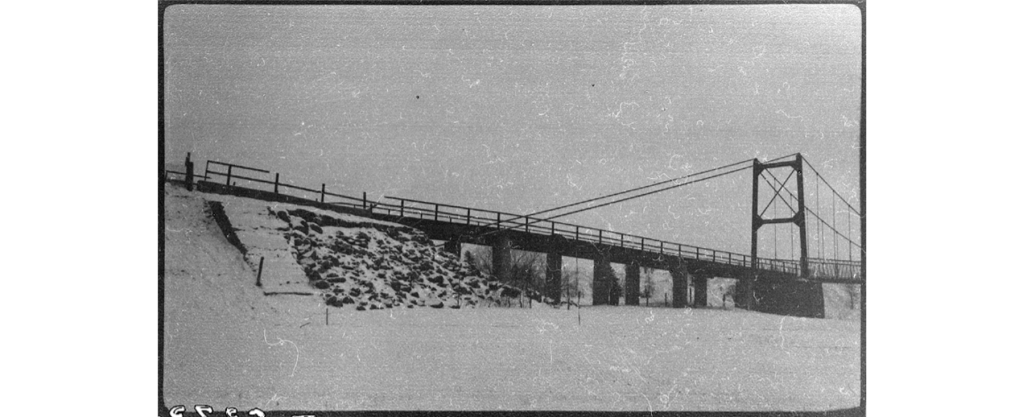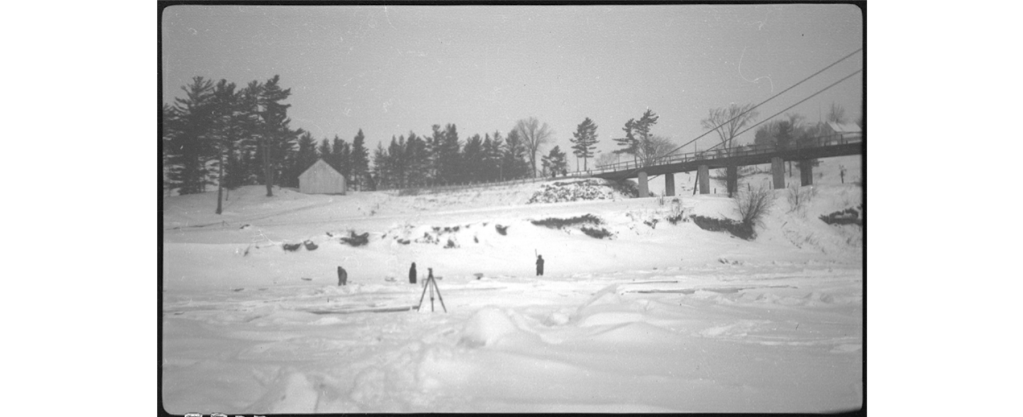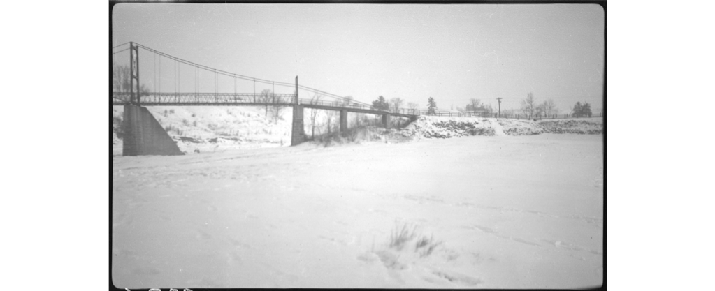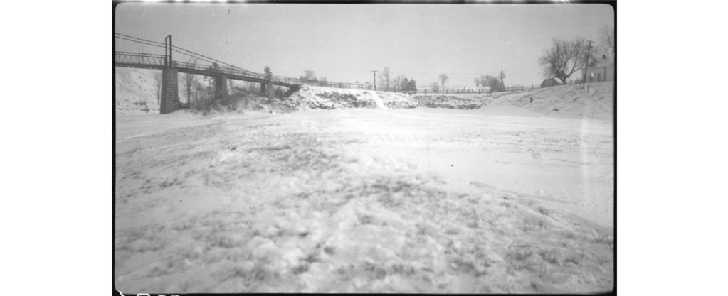 Selon BAnQ ce sont des photographies intitulées « Pont Milot à Sainte-Monique » de Louis-Philippe Poudrier en 1941. Il y a 8 photos prises en hiver où l’on voit le pont Milot et la rivière Nicolet enneigée. Vous pouvez cliquez sur la légende de la photo pour accéder à son emplacement original et pour voir les références.