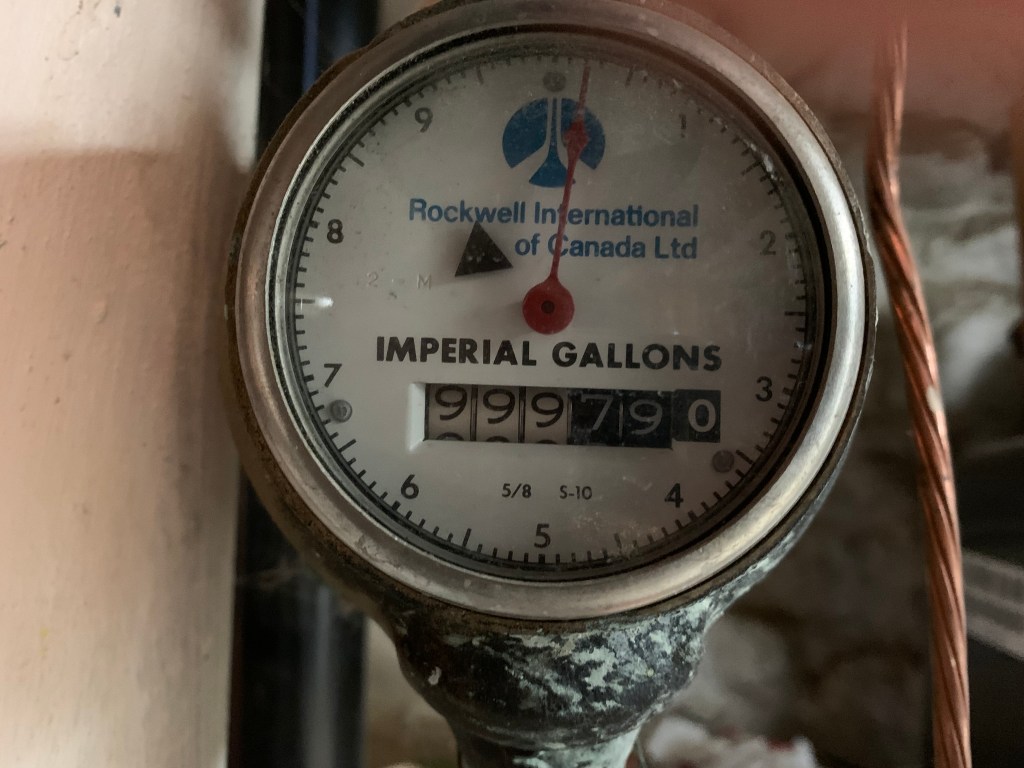 Compteur d’eau Rockwell International of Canada Ltd dans une maison de la rue Saint-Adolphe, Sainte-Monique, novembre 2022.