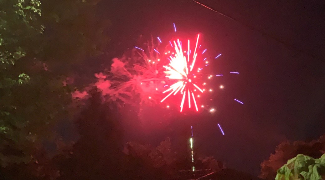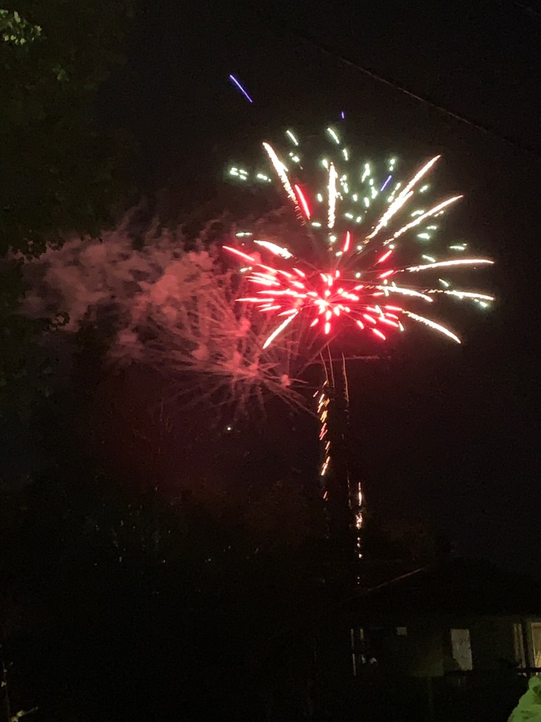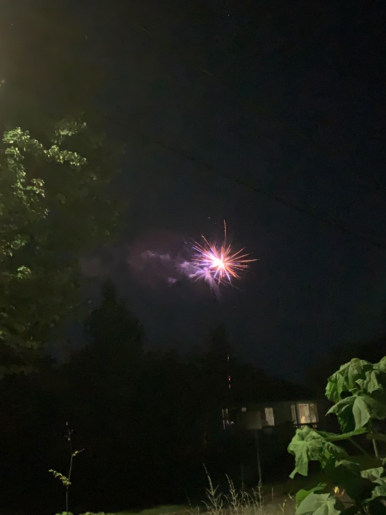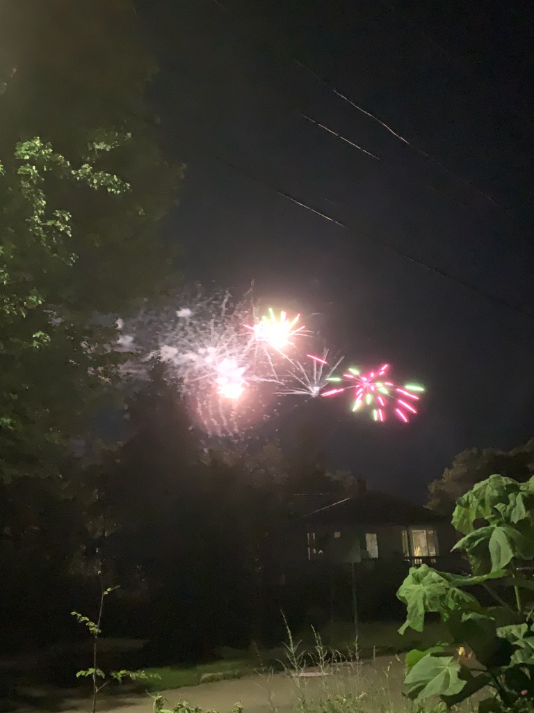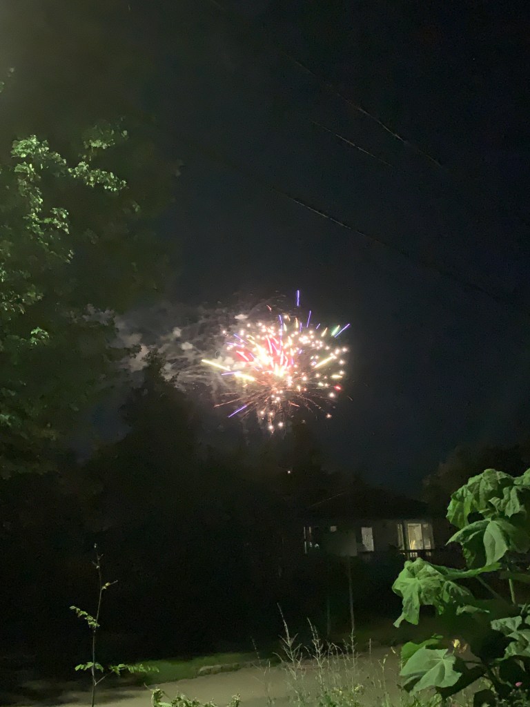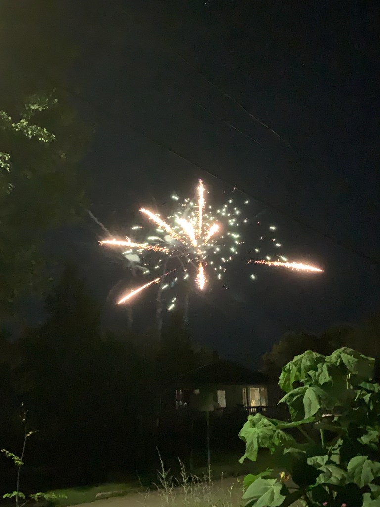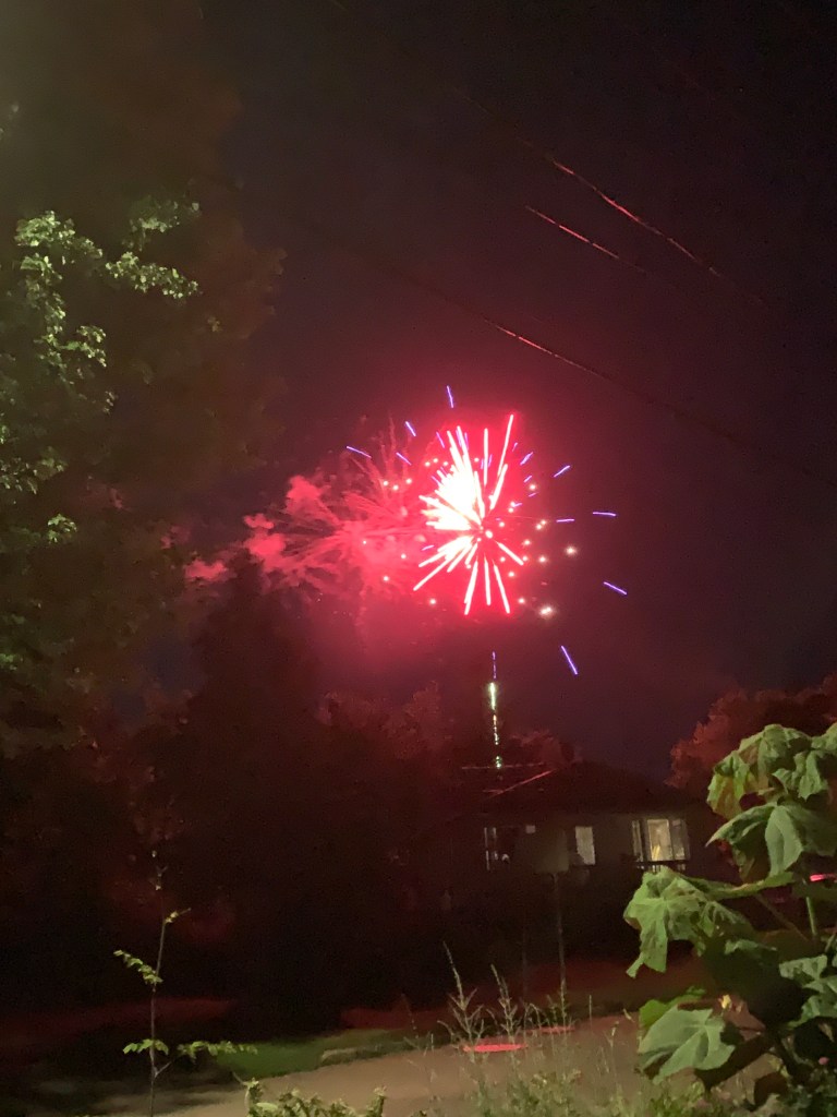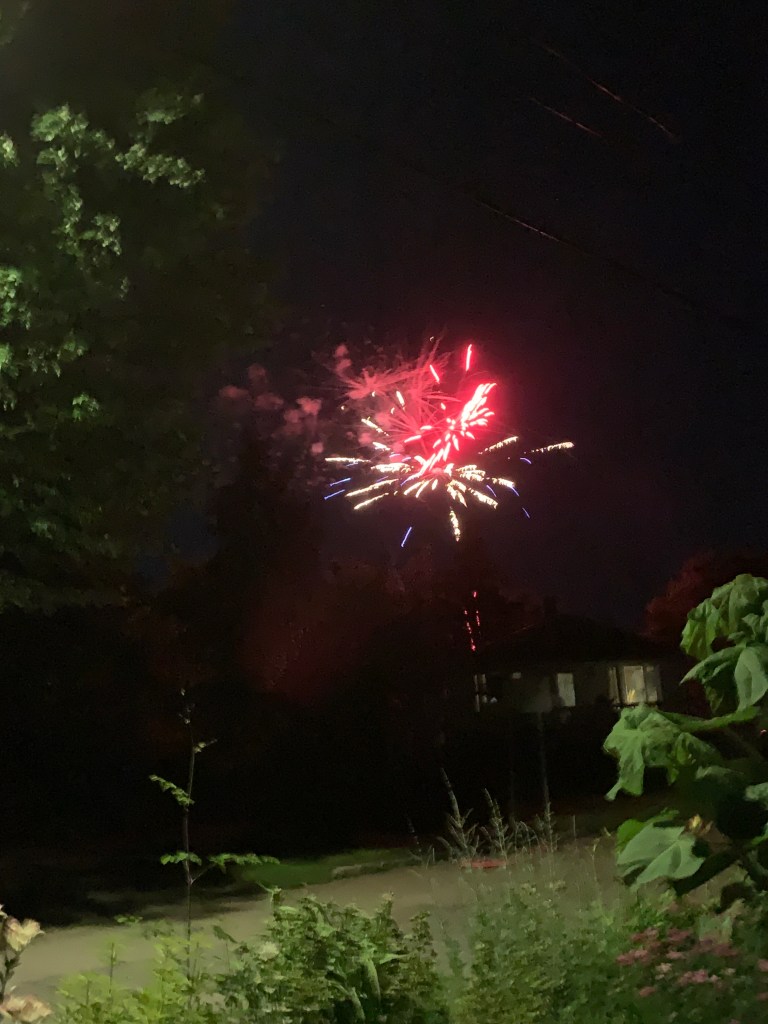 Feux d’artifice au dessus de la maison de Francine, 1er juillet 2022, rue Saint-Adolphe, Sainte-Monique de Nicolet, Québec, Canada.