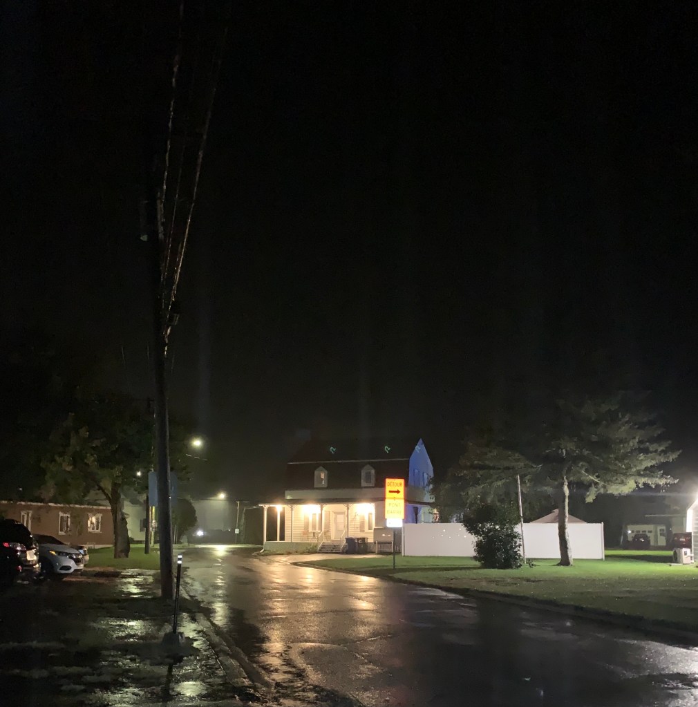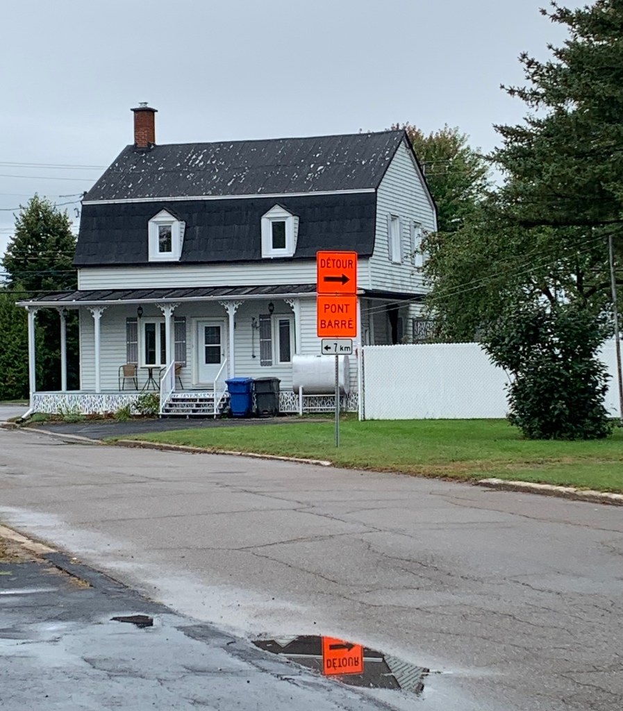 Pancarte de détour sur la rue Saint-Adolphe, Sainte-Monique de Nicolet, 19 septembre 2022. Pancarte pour indiquer que le pont de La Visitation était fermé.