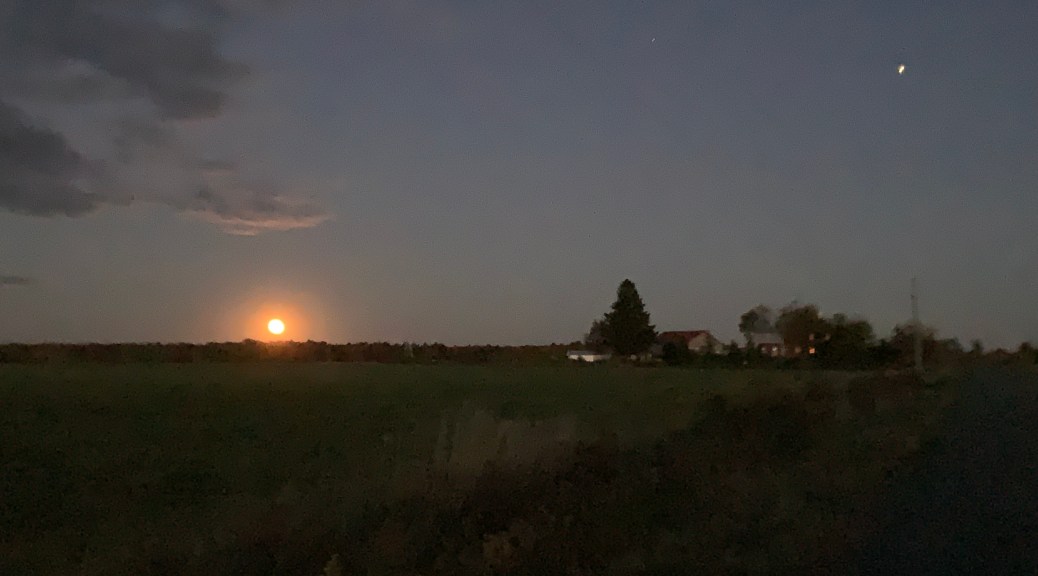 Pleine lune, 10 octobre 2022, Rang du Nord-est-de-la-rivière, Sainte-Monique, QC, Canada.