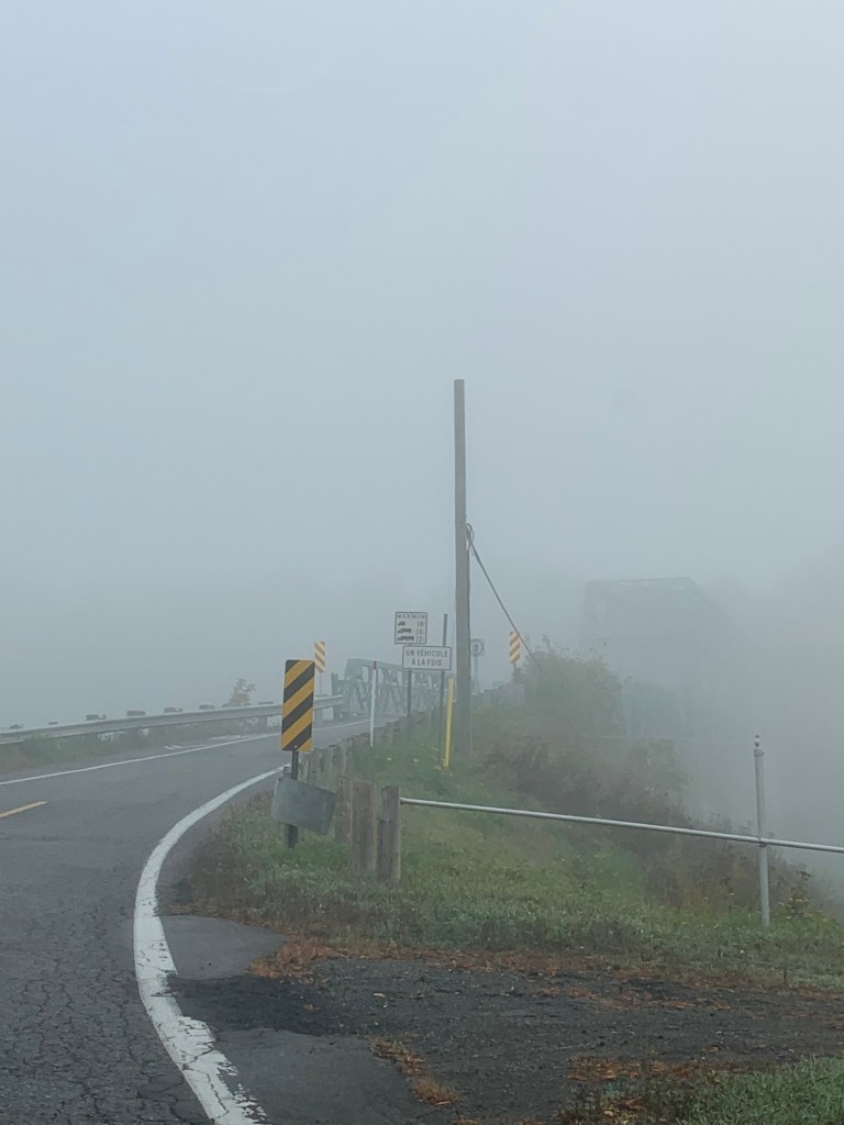 Un énorme brouillard sur le pont du Rang de l’île, Nicolet. Photo prise le 6 octobre 2021,