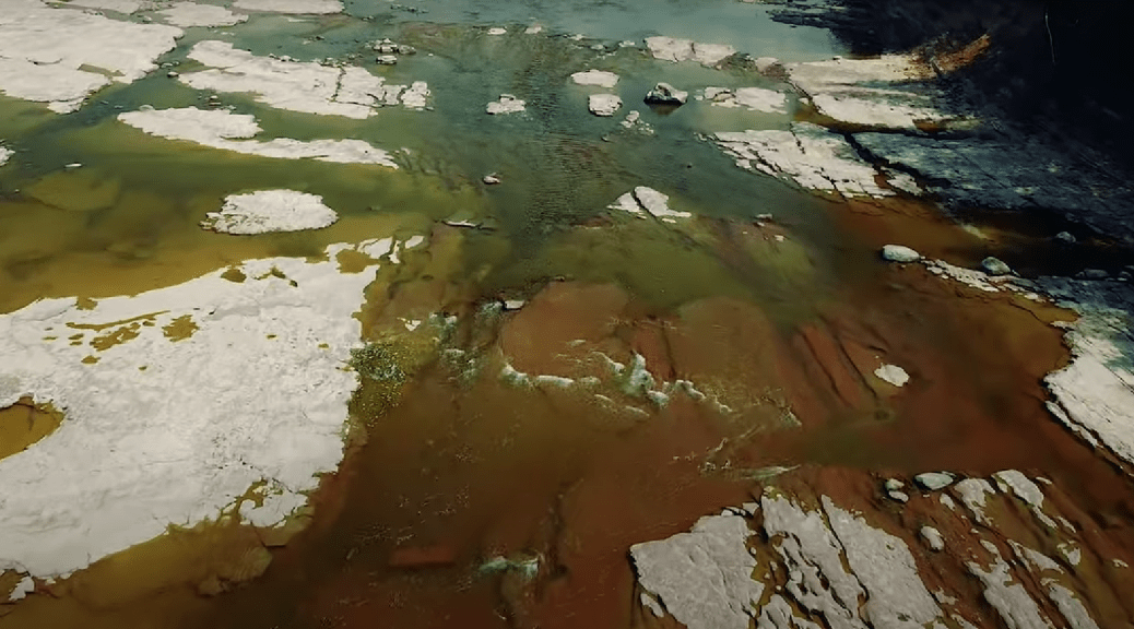 Vidéo de Projet Caribou où l’on voit bien le fond de la rivière et les sillons creusés par l’eau. Vidéo publié le 30 juin 2020, ce qui est filmé se situe avant le pont en remontant la rivière.