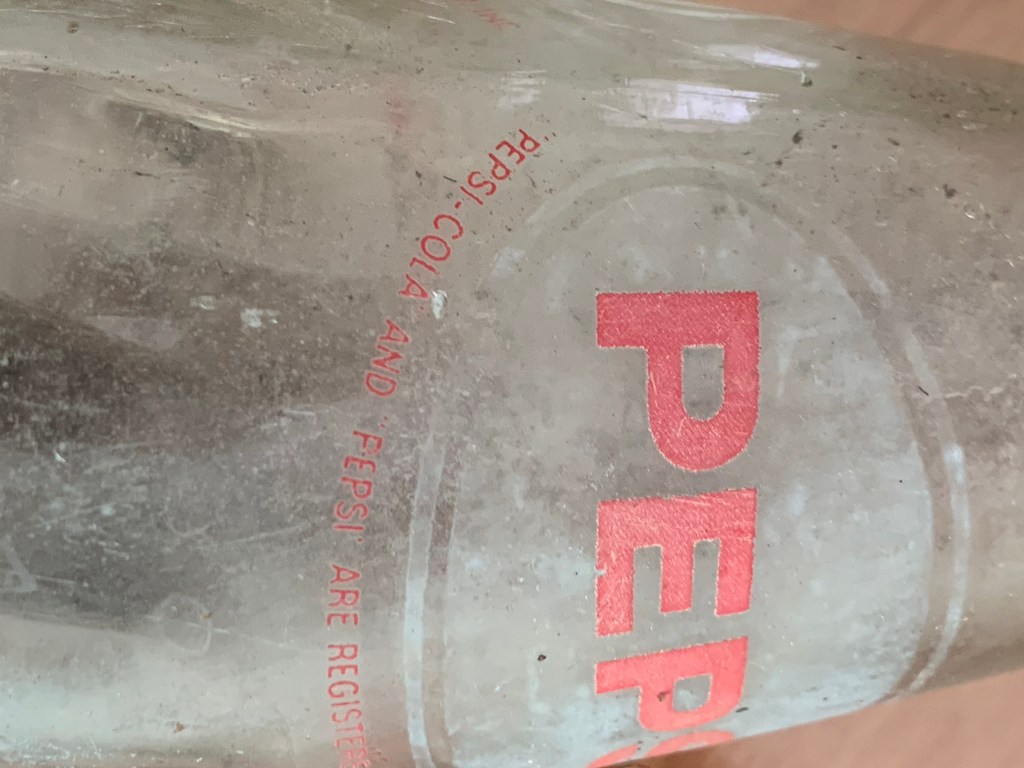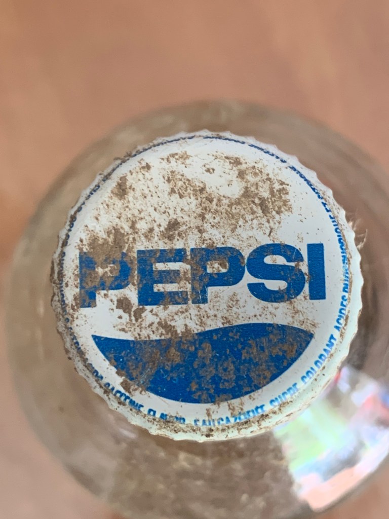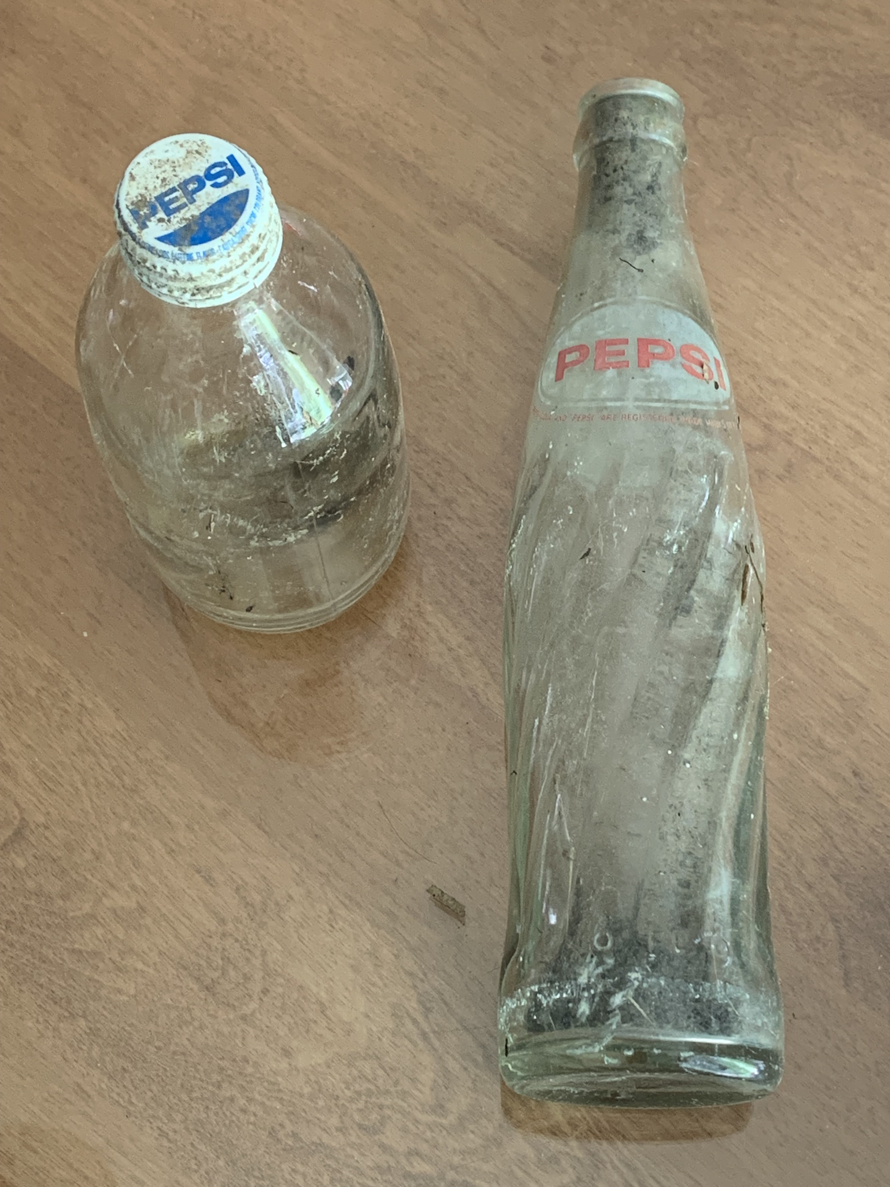 Bouteilles Pepsi découvertes dans le sol de la rue St-Adolphe à Sainte-Monique de Nicolet, une en 2023 et l’autre en 2024