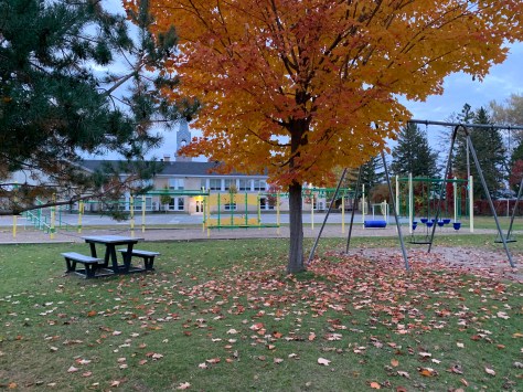 Diaporama de 8 photos de la cour d’école Arc-en-ciel en octobre 2022, Sainte-Monique de Nicolet.