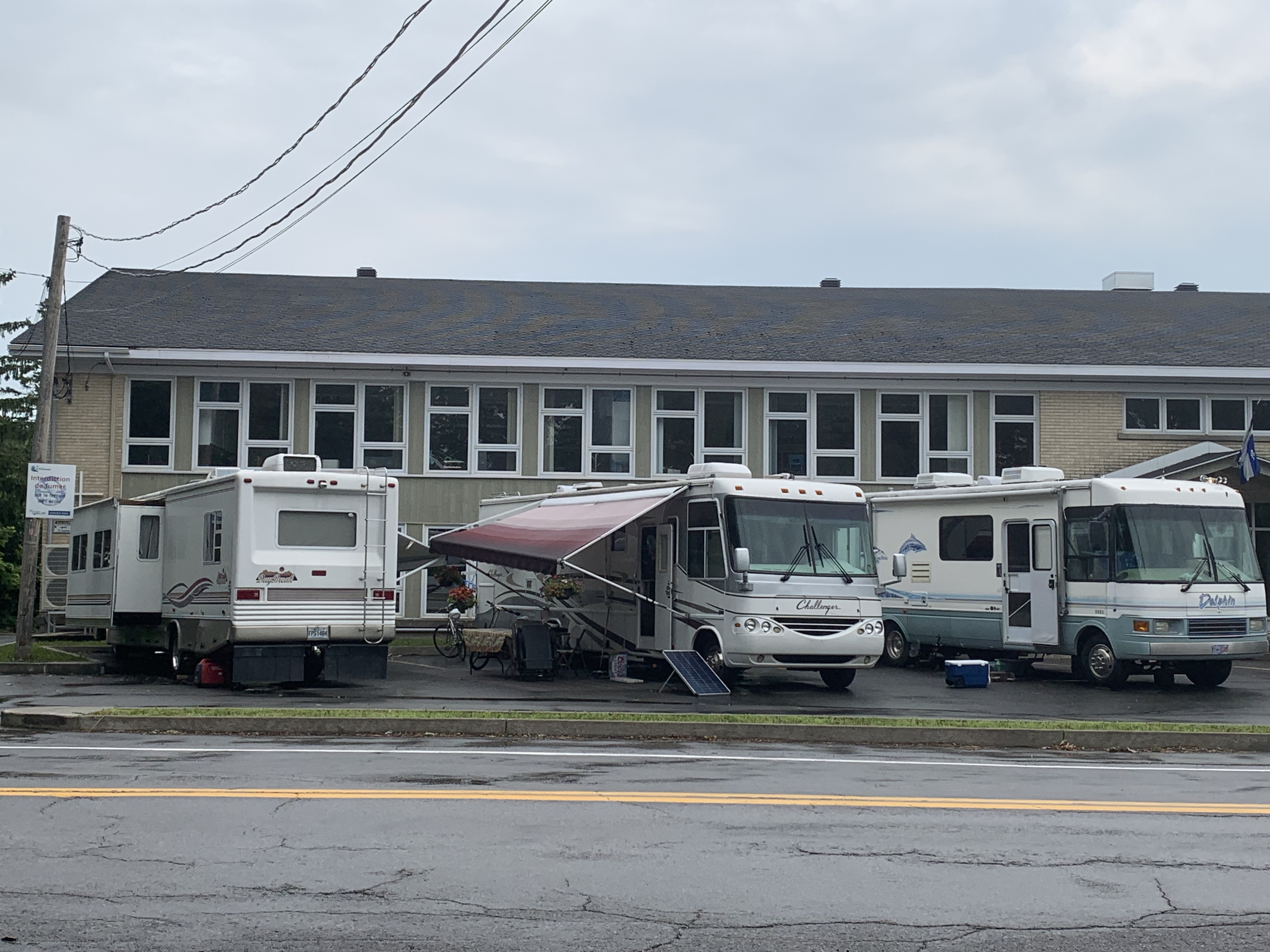Roulottes devant l’école primaire, Festival Country de Sainte-Monique, 13 juillet 2023