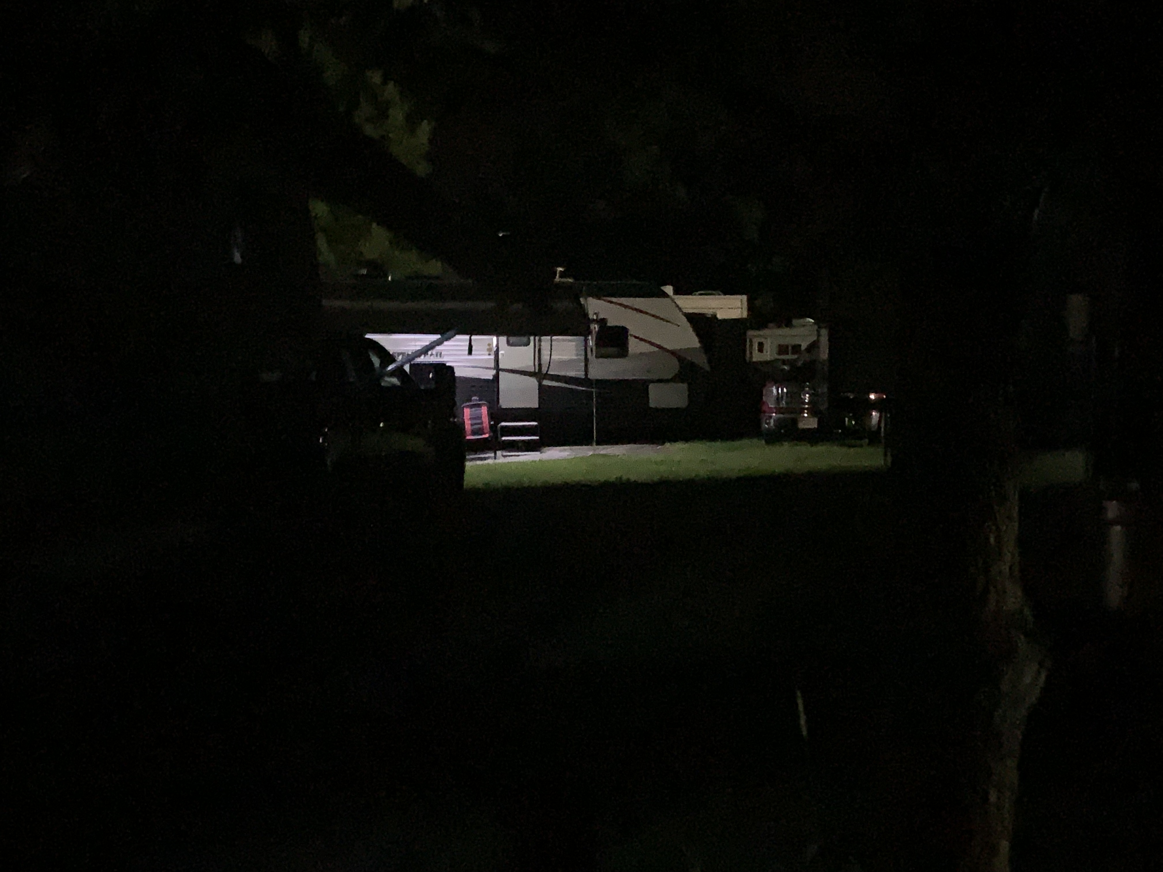 Roulotte la nuit sur le terrain du Préau, Festival Country de Sainte-Monique, 15 juillet 2023