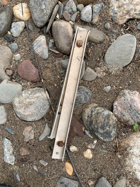 Différents éléments trouvés sur le bord de la rivière Nicolet à Sainte-Monique, 3 juillet 2024.