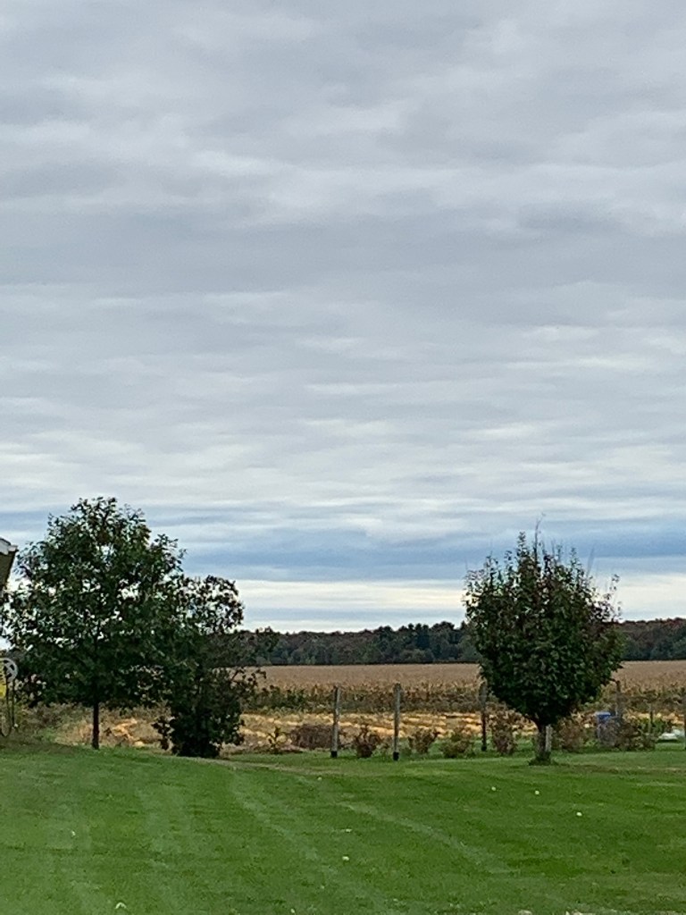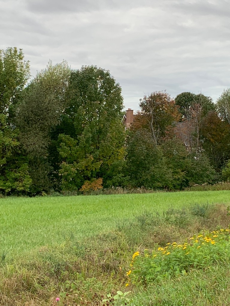 Bleu et vert, champs avec vu sur l’intersection du Petit St-Esprit et la 226